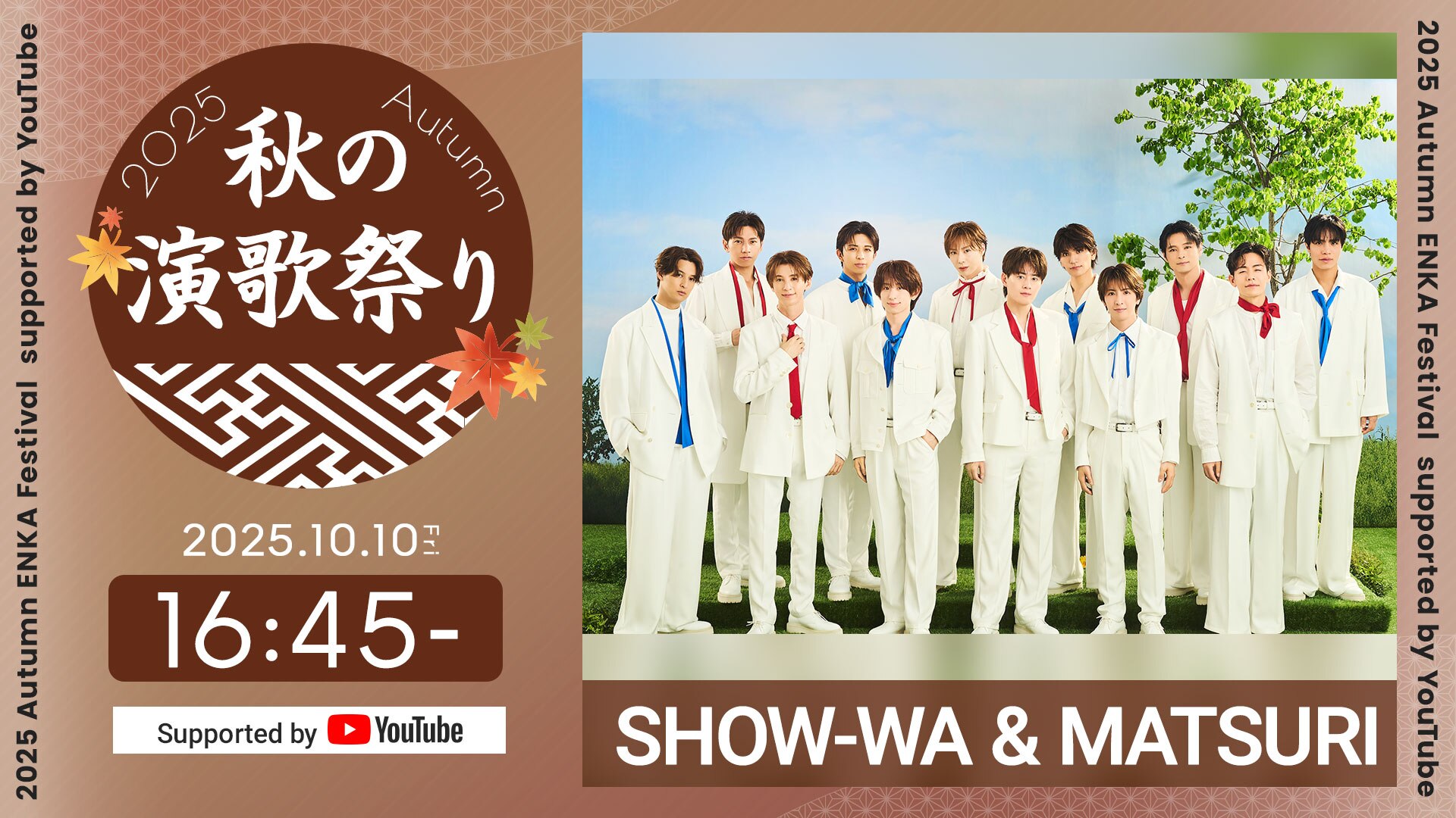 2025年10月10日(金)公開となります。 詳細は下記よりご確認ください。 【秋の演歌祭り2025 Supported by YouTube】再生リスト