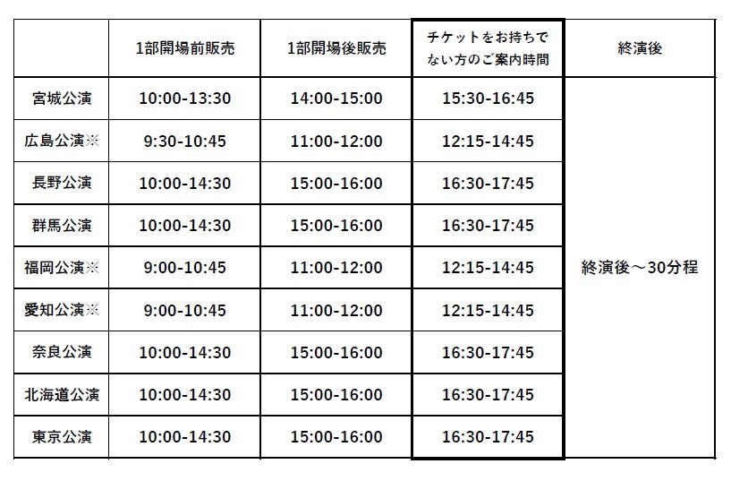 ※販売時間内でも、販売の一時中断、グッズ売り場の待機列を切らせていただく場合がございますので、予めご了承ください。