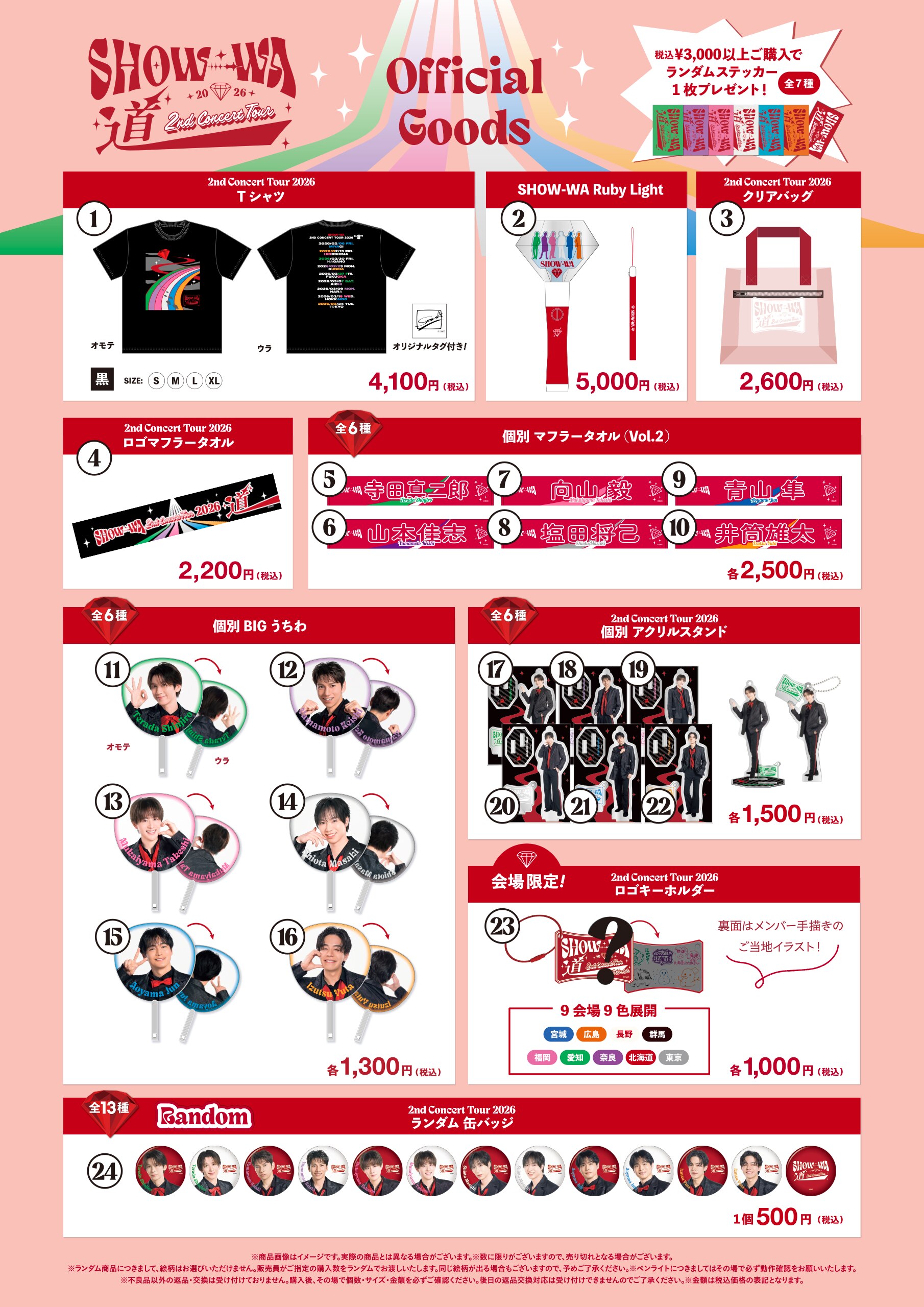 SHOW-WA 2nd Concert Tour 2026 “道” Official Goods会場販売のお知らせ です。