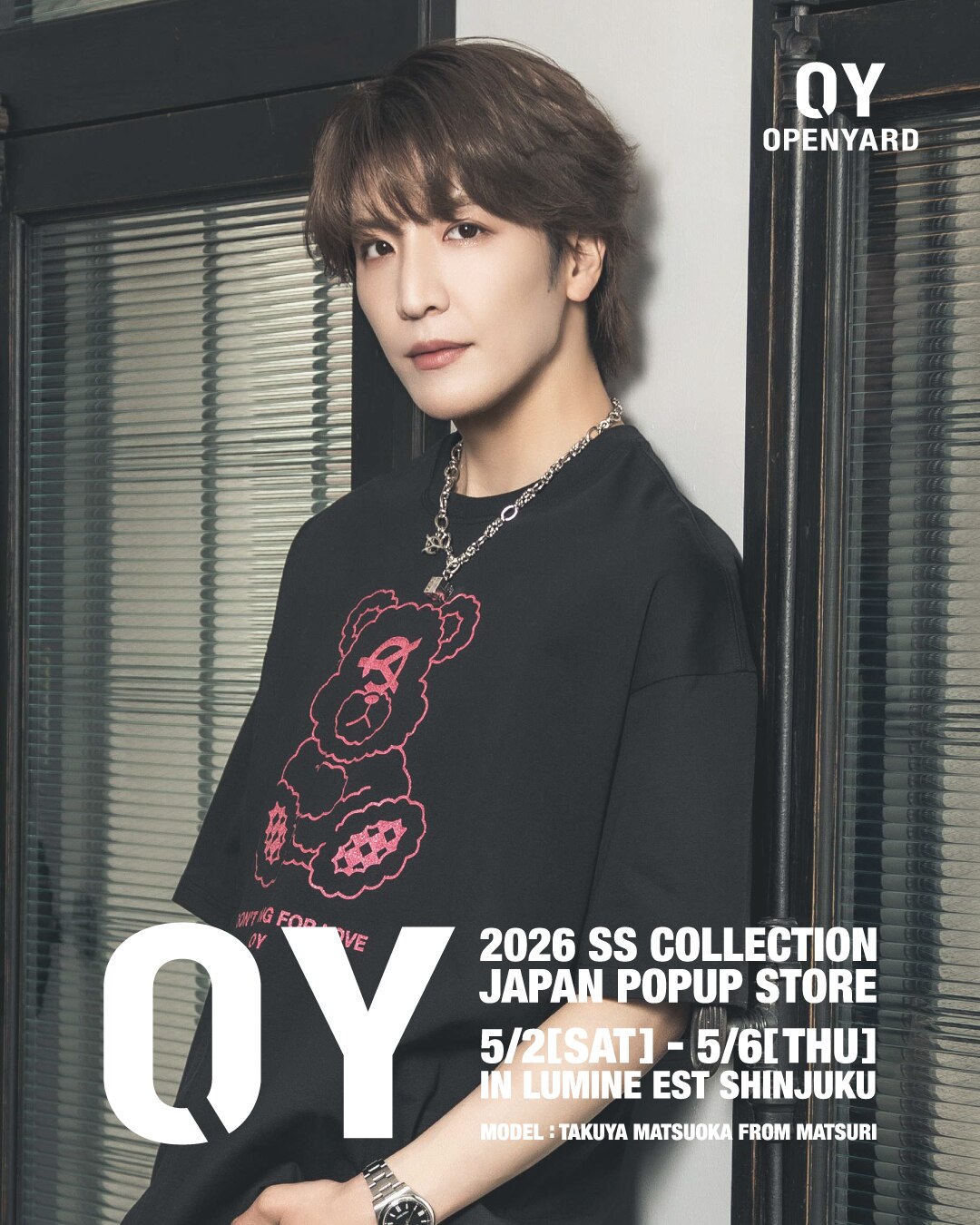 5/2(土)から開催される「OY POPUP STORE」にて、5/4(月・祝)と5/5(火・祝)の両日、松岡卓弥ビジュアルモデル記念購入特典として、店内商品の中から1万円(税込)お買い上げごとに1枚ずつ、6月22日(月)に開催される松岡卓弥スペシャルイベント参加券(お渡し会)を配布、そしてお渡し会と同時開催のミニ写真展チケットもご用意。